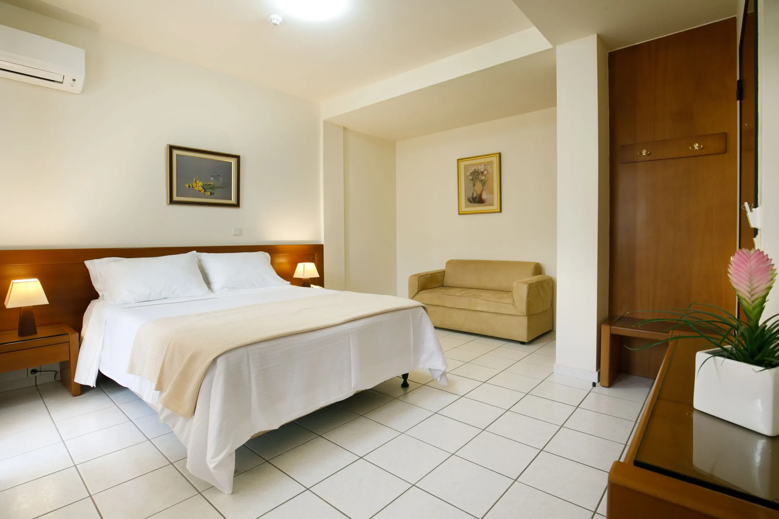 Τα Premium Δίκλινα δωμάτια διαθέτουν είτε ένα διπλό κρεβάτι είτε δύο μονά κρεβάτια. Ακόμα έχουν μεγάλη τηλεόραση LED 43″, ντουλάπα, καθρέπτη, τηλέφωνο, θυρίδα ασφάλειας και φυσικά αυτόνομο κλιματισμό. Επιπλέον παρέχουν την extra άνεση ενός καναπέ κρεβάτι ή τραπέζιου με καρέκλες.